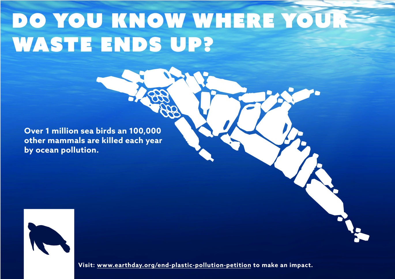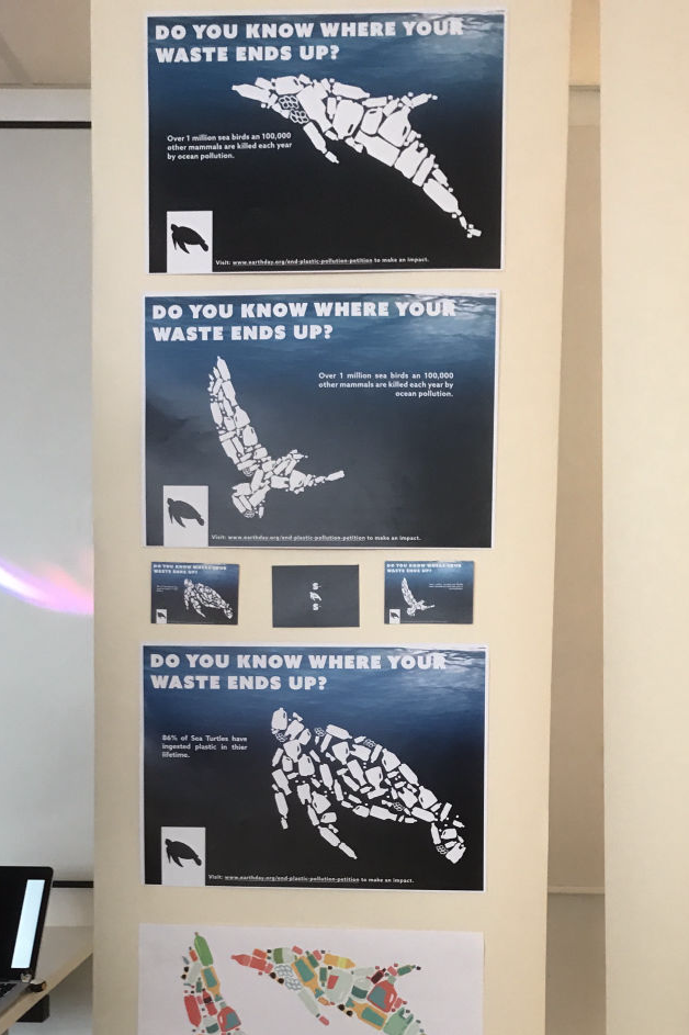 For the project "Change the World", we were given 5 days to positively change the world through graphic design of any media. One of the issues that I really care about in the world at the moment is Ocean pollution as we are 100% to blame for it and something needs to be done soon to stop this having a lasting impact. I designed a series of posters to raise awareness for the impacts thar out plastic use has and used a visually striking way to provoke the audience think about this. I chose the 3 most loved animals from the ocean, I gained this infomation through doing surveys and the 3 that came out on top were; Sea Turtles, Sea birds (albatross) and Dolphins. I wanted to visulaise the animals consuming this plastic and through the deisgn process I came up with the idea to show these platic items making up the animals.